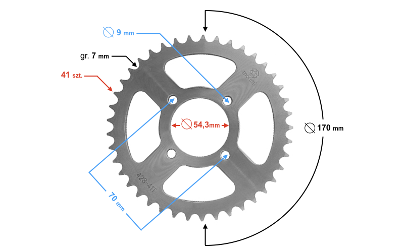 - średnica zewnętrzna zębatki: 170 mm