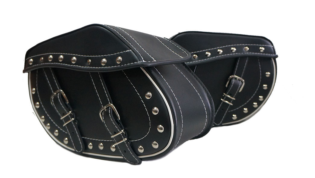 Skórzane sakwy motocyklowe 42x26x18 z białą nicią