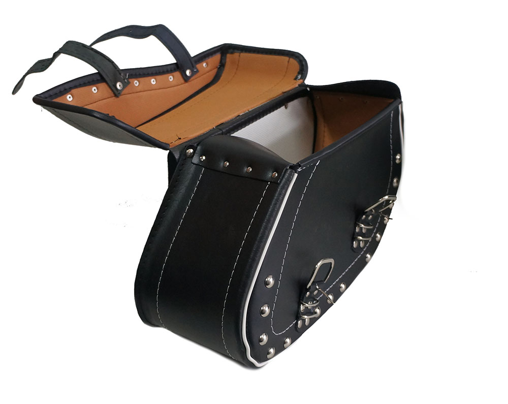 Te ręcznie szyte sakwy motocyklowe zostały zaprojektowane z myślą o trwałości i wygodzie użytkowania. Gruba skóra naturalna (3–3,5 mm) w połączeniu z usztywnianą konstrukcją zapewnia stabilność oraz odporność na odkształcenia. Gładka powierzchnia i staranne wykończenie w połączeniu z ozdobnymi białymi wstawkami sprawiają, że sakwy prezentują się wyjątkowo efektownie.