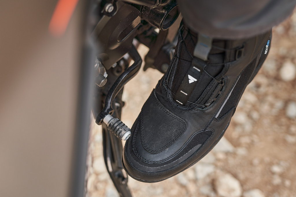 Buty STRATO WP posiadają specjalną gumowaną nakładkę, która pozwala na szybszą i bezpieczniejszą zmianę biegów. Gwarantuje ona podwyższoną przyczepność, dzięki czemu łatwiej i precyzyjniej możesz kontrolować obsługę dźwigni. Dodatkowo wzmocnienie tej części buta zabezpiecza jego powierzchnię przed ścieraniem i nadmierną eksploatacją. Dzięki niej buty dłużej zachowają swój wygląd. Drobny element, a tak wiele znaczy.