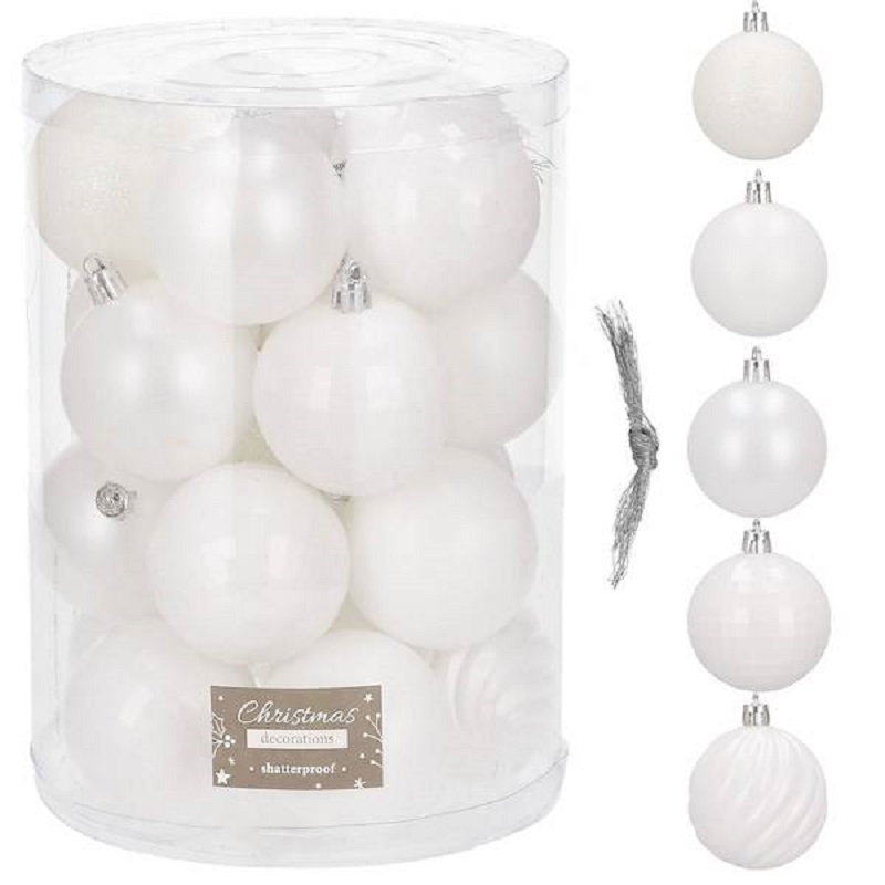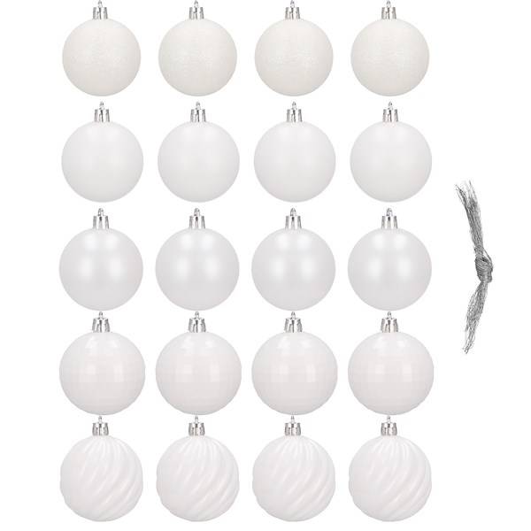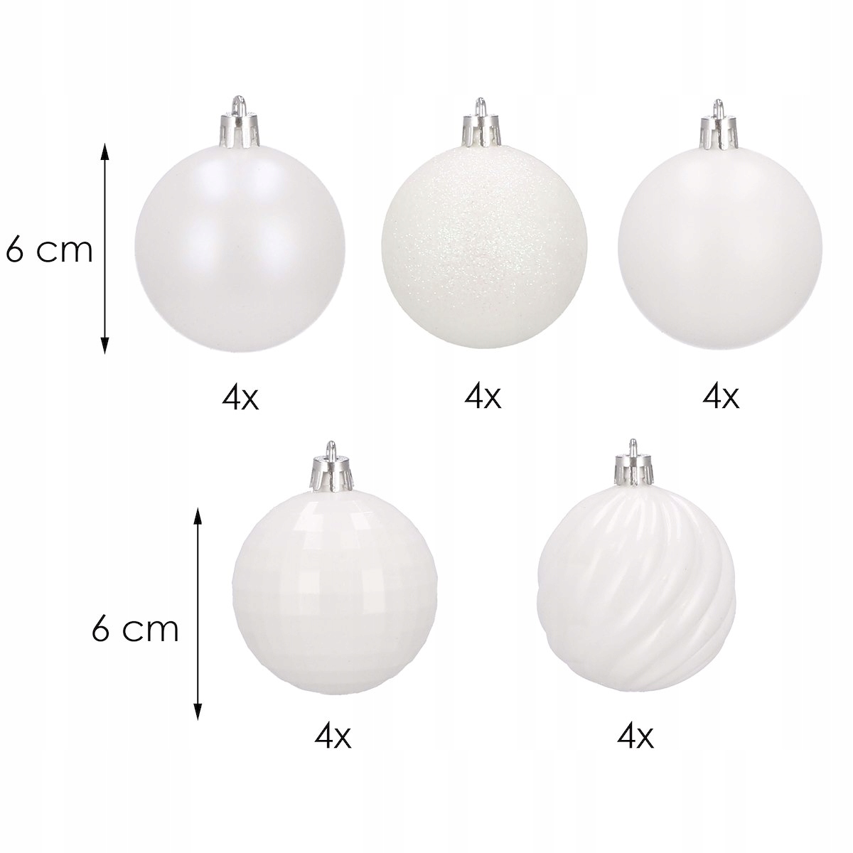 Bombki choinkowe 20 szt. ozdoby świąteczne zestaw 6cm białe