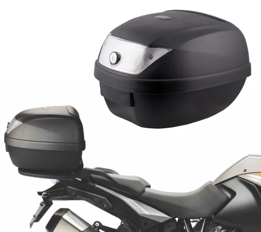 - Uniwersalna płyta montażowa, montaż prawie na wszystkich bagażnikach w skuterach i motocyklach