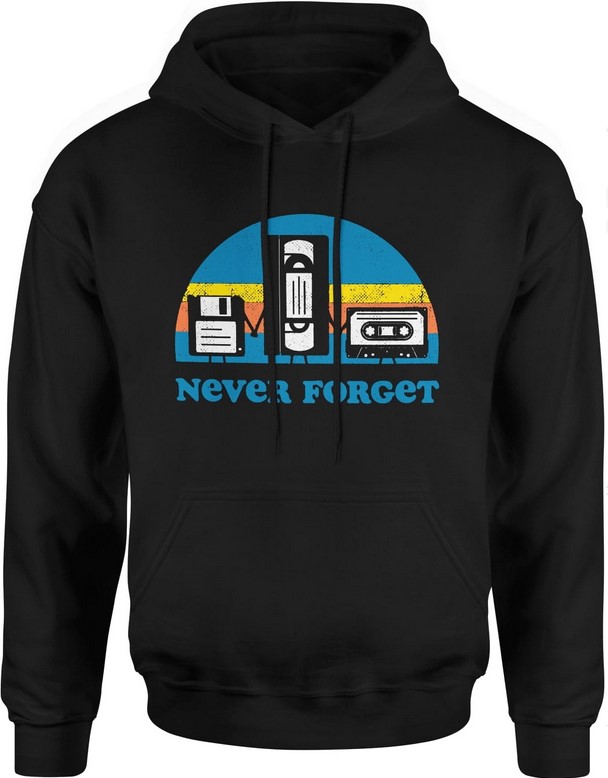 Bluza męska z kapturem Never forget retro dyskietka VHS kaseta