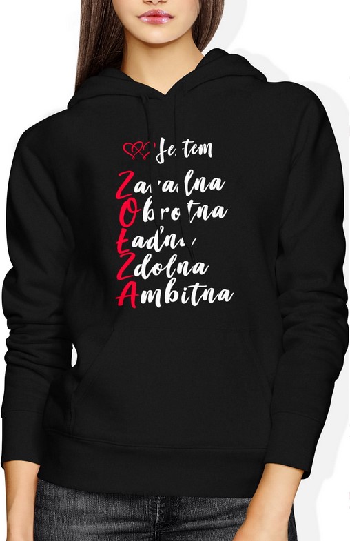 Bluza damska z kapturem i kieszenią typu kangurek oraz nadrukiem to prawdziwy hit w naszej ofercie. Cieszy się ona ogromna popularnością wśród naszych klientów. Bluza została wykonana z wysokogatunkowej bawełny o podwyższonej gramaturze, dzięki czemu jest niezwykle wytrzymała i jednocześnie wygodna. Wykończenie rękawów i dołu bluzy stanowią praktyczne ściągacze.