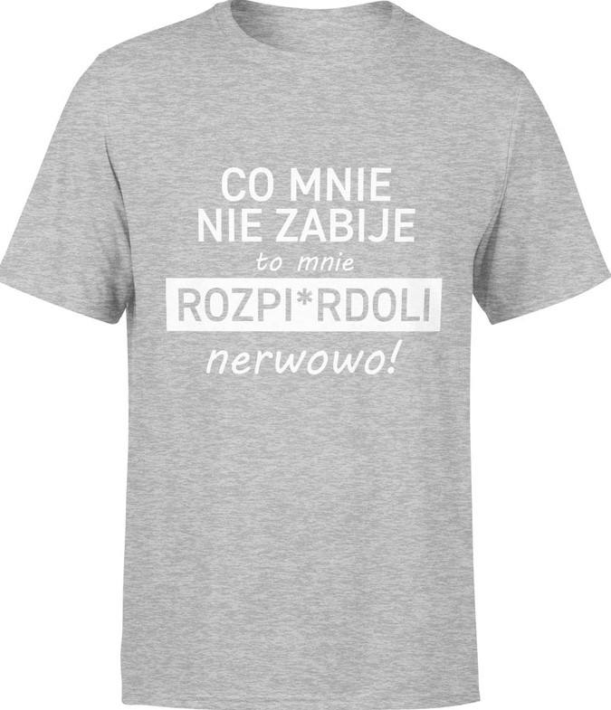 Koszulka męska Co mnie nie zabije to mnie rozp*erdoli nerwowo szara