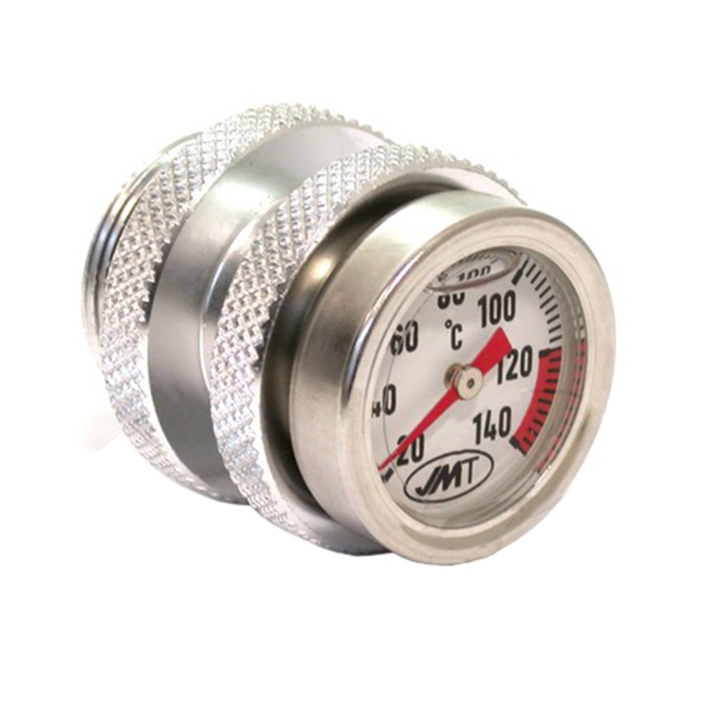 Wskaźnik temperatury oleju JMT przystosowany jest do umieszczenia go w miejscu bagnetu do pomiaru poziomu oleju. Jest to doskonałe rozwiązanie dla tych, którzy w swoich motocyklach nie posiadają innych wskażników temperatury umieszczonych np. w konsoli.Cena dotyczy jednej sztuki.