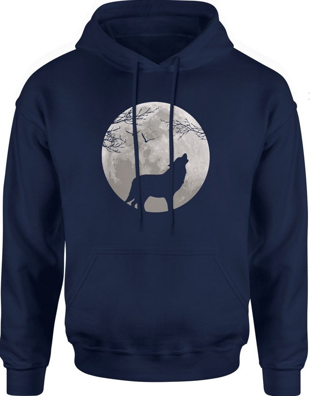 Bluza męska z kapturem Wilk Księżyc z wilkiem Wolf granatowa