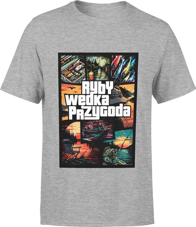 Koszulka męska Ryby Wędka Przygoda Wędkarska dla Wędkarza szara