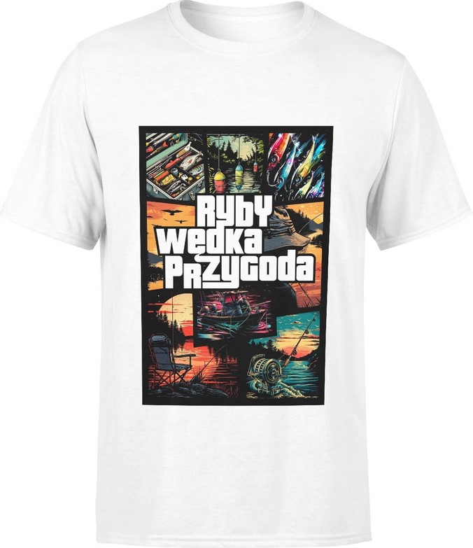 Koszulka męska Ryby Wędka Przygoda Wędkarska dla Wędkarza biała