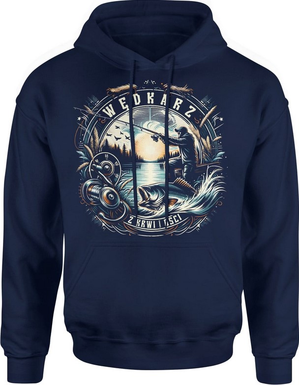 Bluza męska z kapturem Wędkarz z krwi i ości granatowa