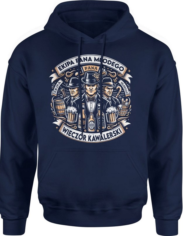 Bluza męska z kapturem Ekipa chłopaków Pana Młodego granatowa