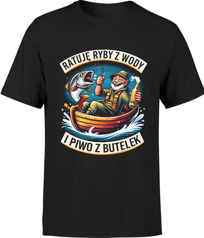 Koszulka męska Wędkarska Ratuje Ryby Z Wody I Piwo Z Butelek