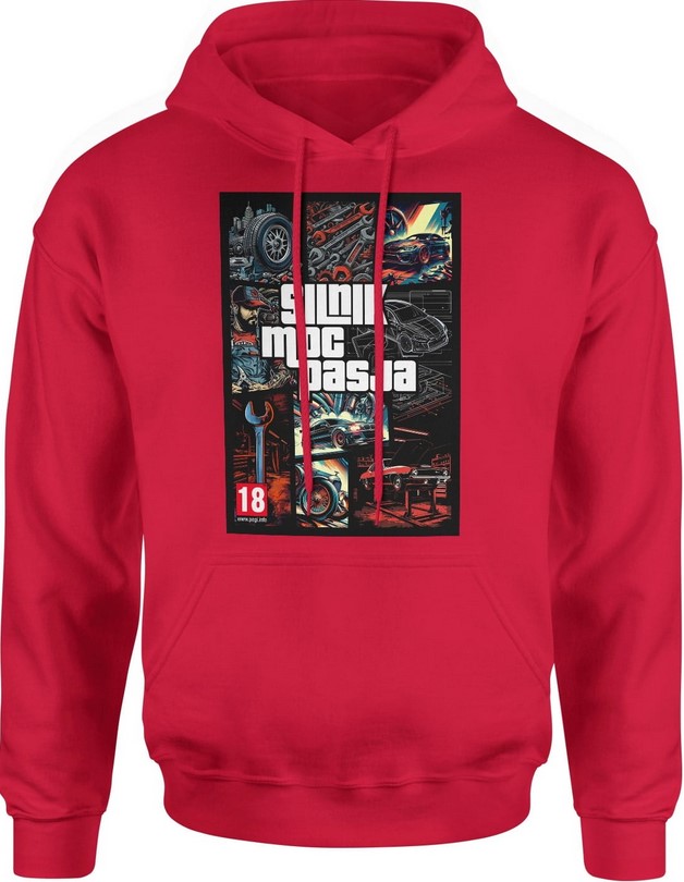 Bluza męska z kapturem Silnik Moc Pasja dla Mechanika czerwona