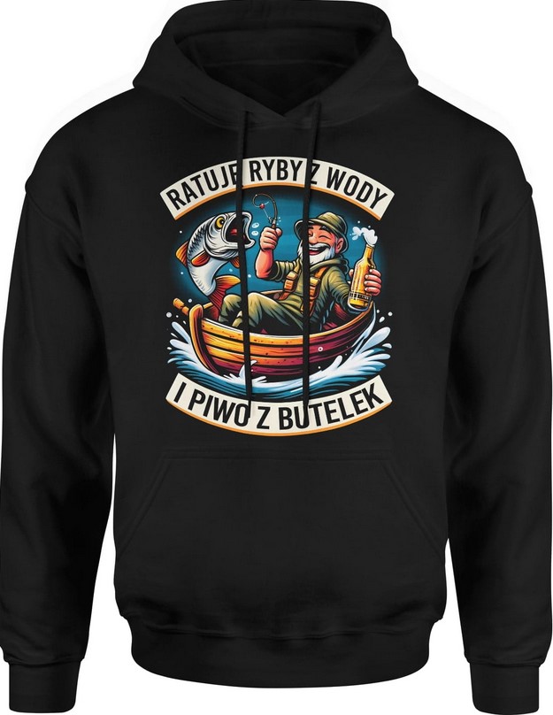 Bluza męska z kapturem Wędkarska Ratuje Ryby Z Wody I Piwo Z Butelek