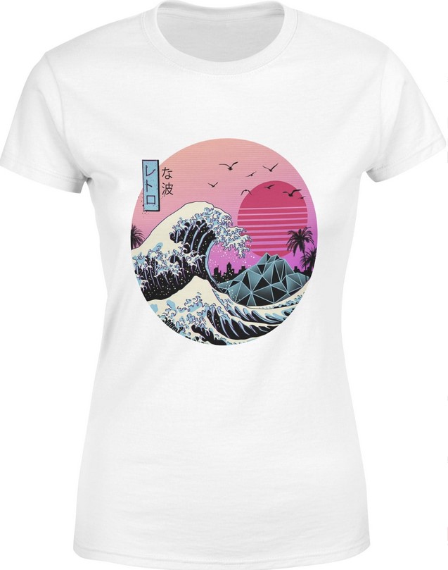 Koszulka damska Wielka Fala W Kanagawie Vintage Hokusai Japońska biała