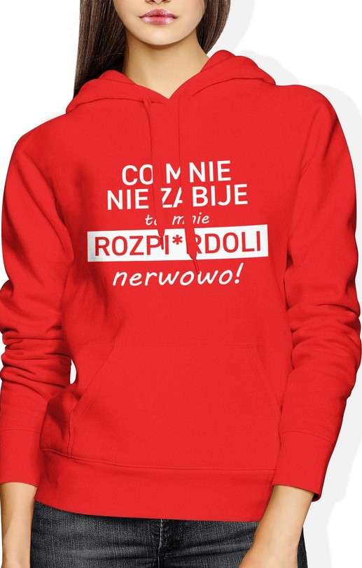 Bluza damska z kapturem Co mnie nie zabije to mnie rozp*erdoli nerwowo czerwona
