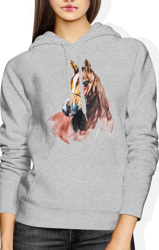 Bluza damska z kapturem Koń z koniem Horse szara