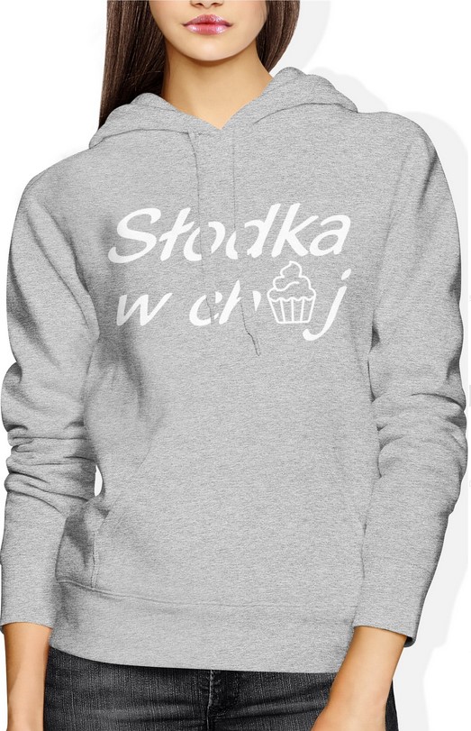 Bluza damska z kapturem Słodka w ch*j śmieszna szara
