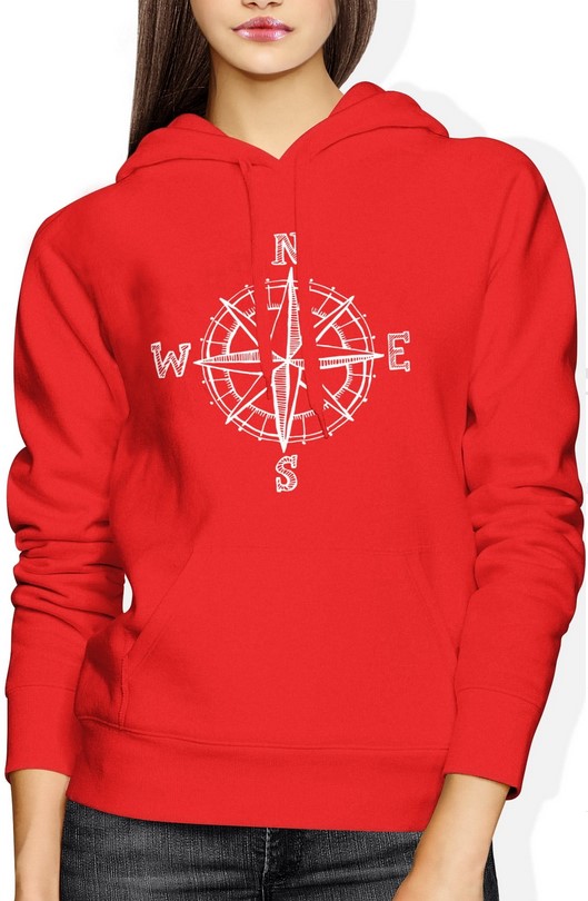 Bluza damska z kapturem Róża wiatrów Kompas czerwona