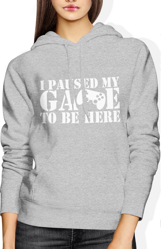 Bluza damska z kapturem I Paused my game to be here Gracz Gamer szara