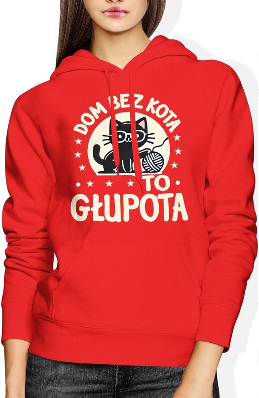 Bluza damska z kapturem Dom bez kota to głupota czerwona