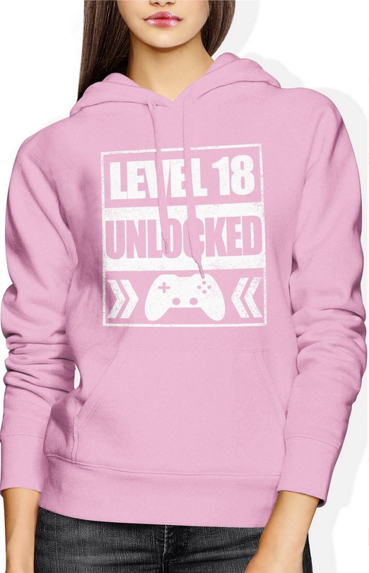 Bluza damska z kapturem Level 18 unlocked na 18 urodziny różowa