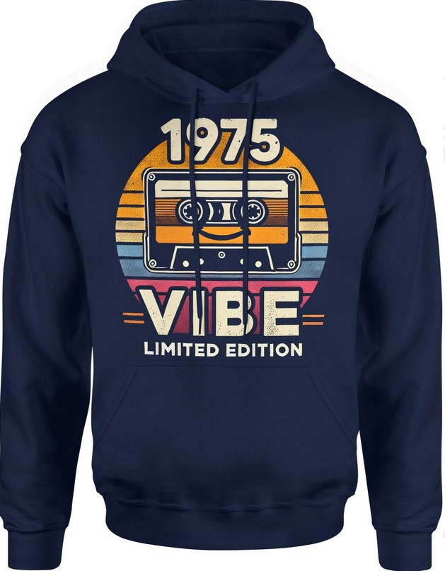 Bluza męska z kapturem 1975 vibe limited edition 50 lat urodziny granatowa