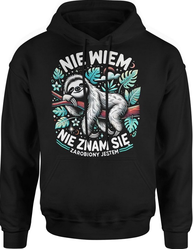 Bluza męska z kapturem Nie wiem nie znam się zarobiony jestem leniwiec z leniwcem