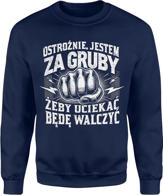 Bluza męska Ostrożnie jestem za gruby żeby uciekać będę walczyć dla grubego granatowa