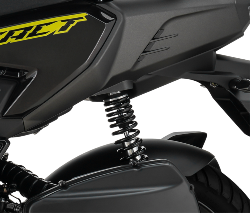 Wysokowydajny tylny amortyzator wytłumia nierówności i niedoskonałości na drodze podczas jazdy.