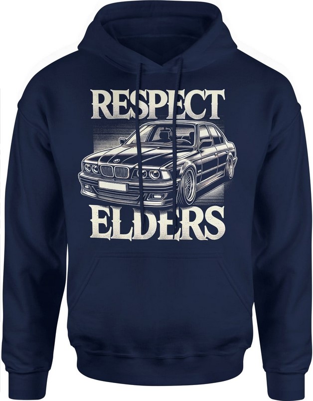 Bluza męska z kapturem Respect Elders vintage z zabytkowym samochodem granatowa