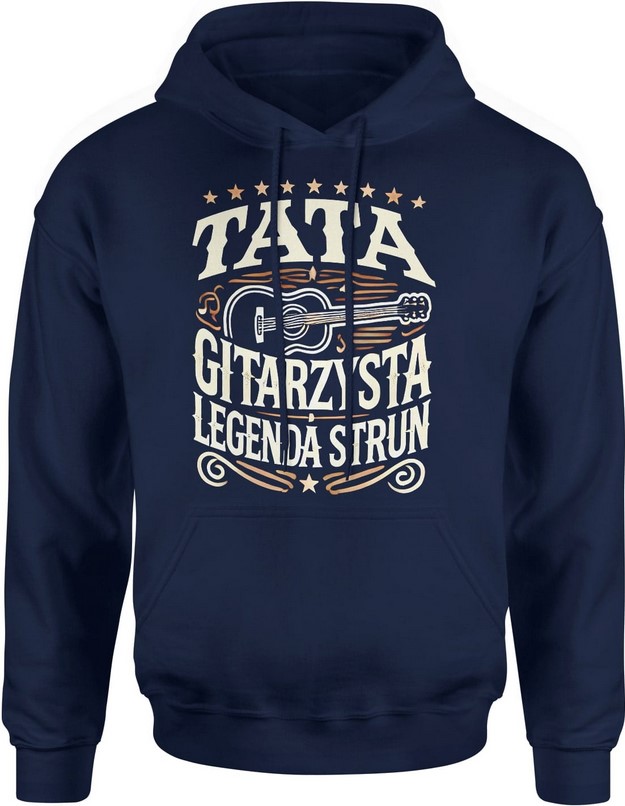Bluza męska z kapturem Tata gitarzysta Legenda strun z gitarą granatowa