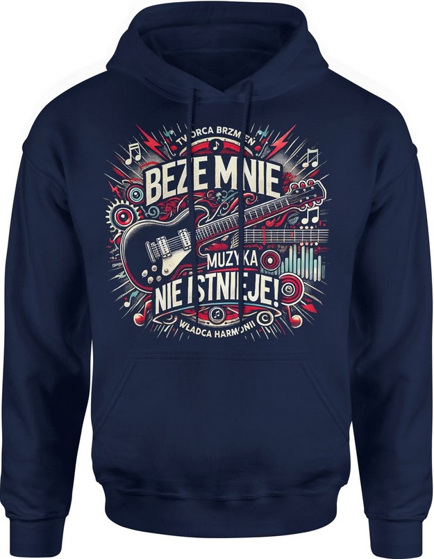 Bluza męska z kapturem Beze mnie muzyka nie istnieje granatowa