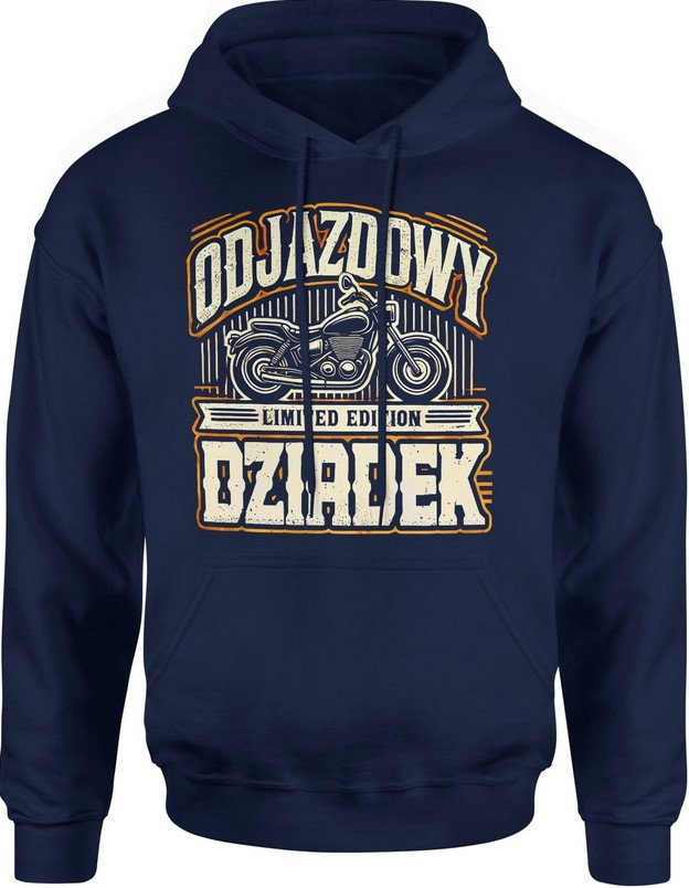 Bluza męska z kapturem Odjazdowy dziadek z motocyklem granatowa