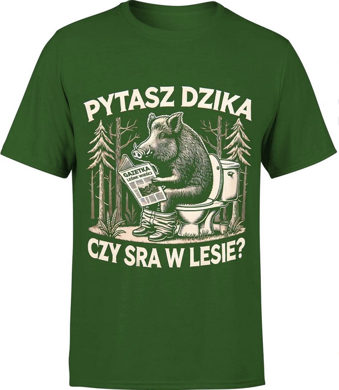 Koszulka męska Pytasz dzika czy sra w lesie z dzikiem zielona