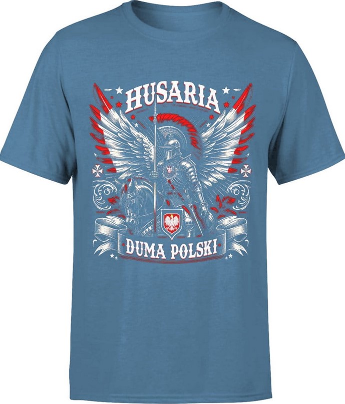 Nadruk inspirowany legendarną Husarią Polską nadaje koszulce wyjątkowego charakteru i podkreśla patriotyczny styl. To doskonały wybór zarówno dla miłośników historii, jak i fanów odzieży patriotycznej, którzy chcą łączyć wygodę z wyrazistym designem.