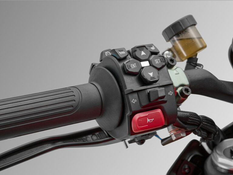 Do dyspozycji kierowcy oddano także elektroniczną przepustnicę, dwukierunkowy quickshifter umożliwiający zmianę biegów bez użycia sprzęgła oraz tempomat, który znacząco poprawia komfort podczas dłuższych tras. To rozwiązania znane z motocykli klasy premium, które w SRK 921 tworzą spójną, nowoczesną całość.