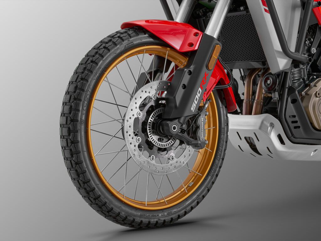 Potężne hamulce Brembo z przodu i z tyłu zapewniają pewne, skuteczne wytracanie prędkości nawet w trudnych warunkach. Dwukanałowy ABS wspiera kontrolę przy hamowaniu na szutrze, piasku i mokrej nawierzchni, ograniczając ryzyko zablokowania kół.