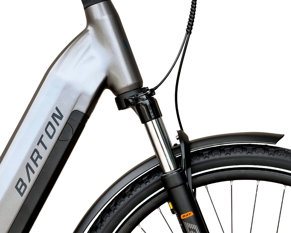 Wyposażony w mocny, centralnie zamontowany silnik Bafang o momencie obrotowym 70 Nm, Barton M210 bez trudu pokonuje wzniesienia i trudniejsze odcinki trasy. Stabilna trakcja i wysoka wytrzymałość sprawiają, że rower sprawdza się zarówno na miejskich drogach, jak i w wymagającym terenie.