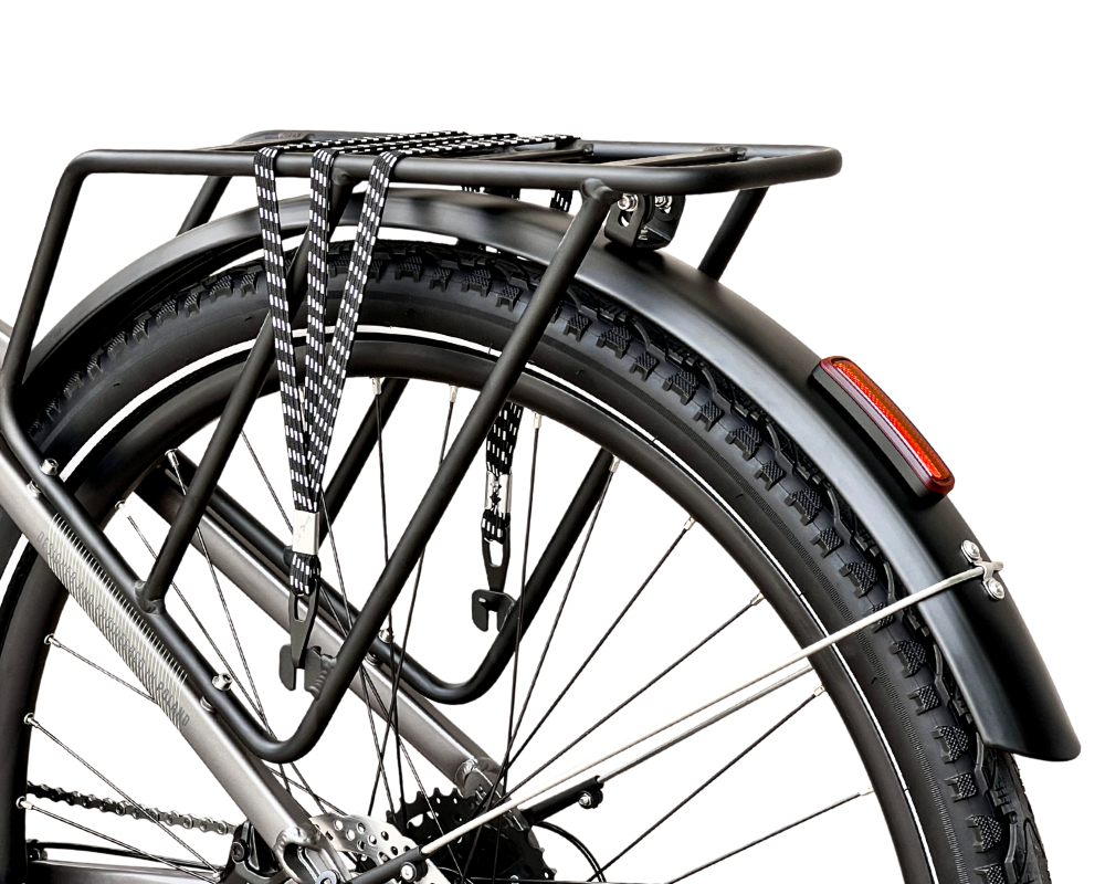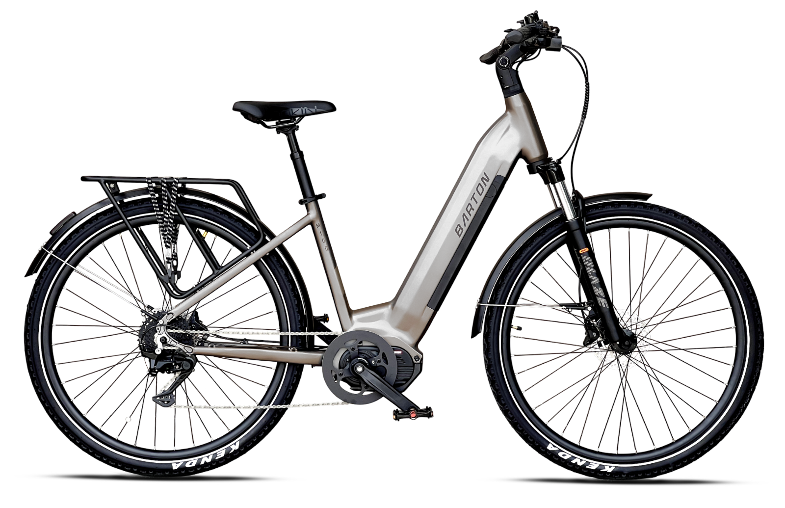 Wyposażony w mocny, centralnie zamontowany silnik Bafang o momencie obrotowym 110 Nm, Barton M100 bez trudu pokonuje wzniesienia i trudniejsze odcinki trasy. Stabilna trakcja i wysoka wytrzymałość sprawiają, że rower sprawdza się zarówno na miejskich drogach, jak i w wymagającym terenie.