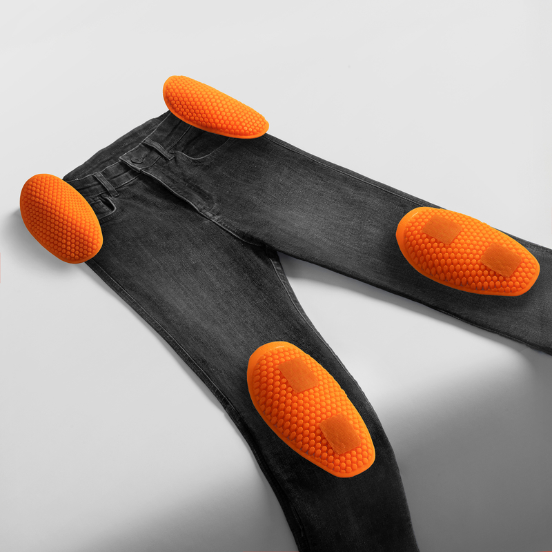 - Zewnętrzne zamki umożliwiające wyjmowanie ochraniaczy kolan