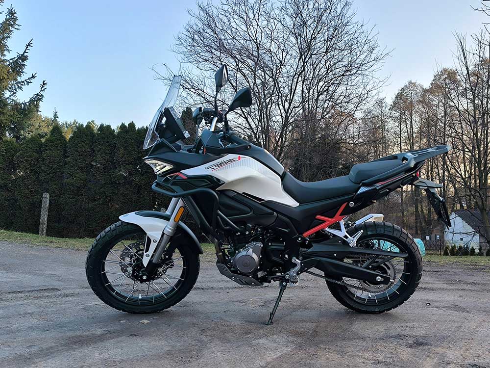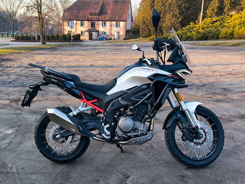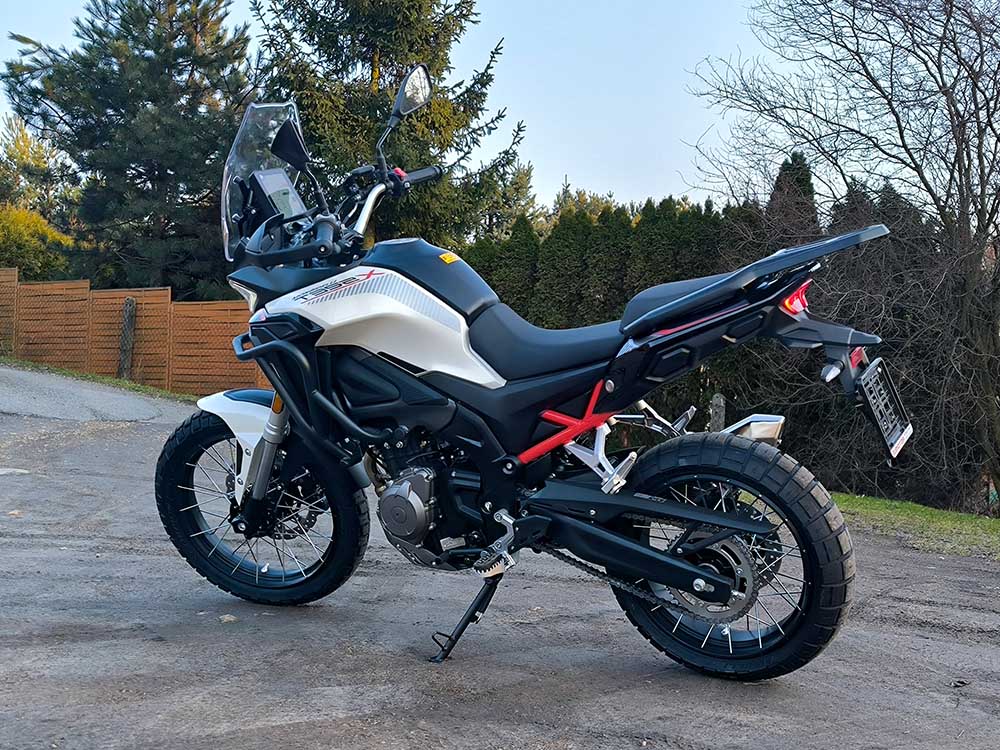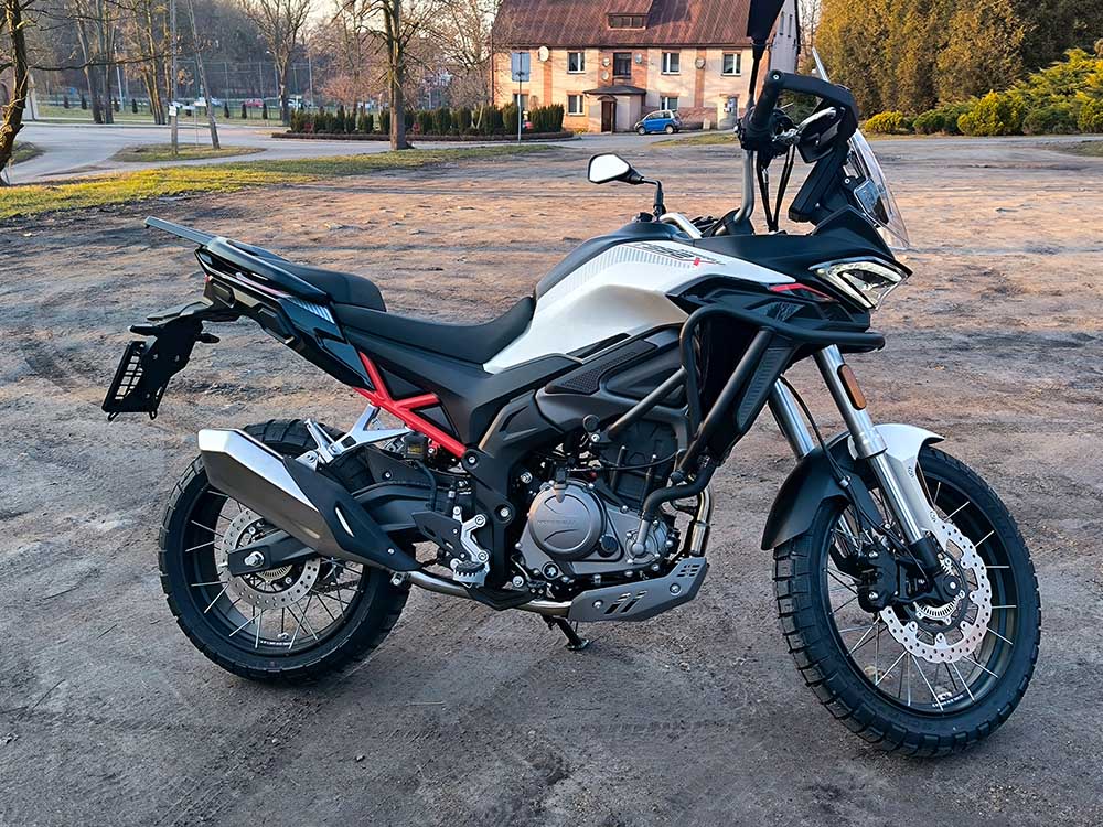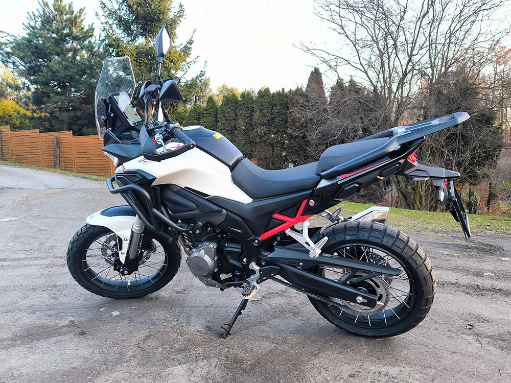 Wysokość siedziska 820 mm, szeroka kierownica i wyprostowana pozycja jazdy zapewniają wygodę podczas długich tras. T352X można wyposażyć w aluminiowe kufry lub miękkie torby Morbidelli, co czyni go idealnym motocyklem wyprawowym. Maksymalna prędkość 140 km/h i 6‑biegowa skrzynia pozwalają komfortowo pokonywać autostrady i drogi ekspresowe.