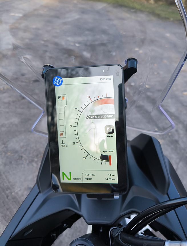 Motocykl wyposażono w pionowy, rajdowy ekran TFT 7”, który oferuje trzy tryby jazdy: Standard, Sport i Off‑Road. System Morbidelli Connect zapewnia nawigację GPS, funkcję SOS, zdalne zabezpieczenie antykradzieżowe oraz roczny dostęp do aplikacji. Podświetlane przełączniki zwiększają komfort obsługi po zmroku, a port USB umożliwia ładowanie urządzeń podczas jazdy.