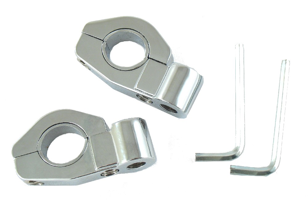 Bardzo potrzebne jeśli brakuje oryginalnego uchwytu lusterka lub jeśli jest ono zniszczone. Mocowania dzięki specjalnym wkładkom nadają sie do montażu na wszystkich kierownicach o średnicy 22 mm (standatrd w 95% jednośladów) i 25 mm (ciężkie choppery).