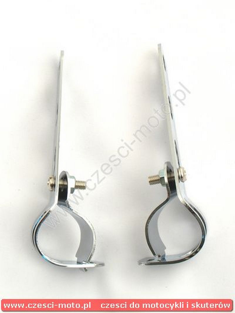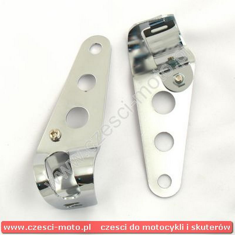Uniwersalne mocowania do lampy przedniej w kolorze chromu. Mocowane do rury przedniego zawieszenia (lag o średnicy 30 - 35mm)