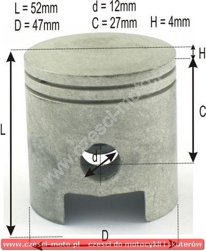 - Wymiar tłoka: 47,00/12/27