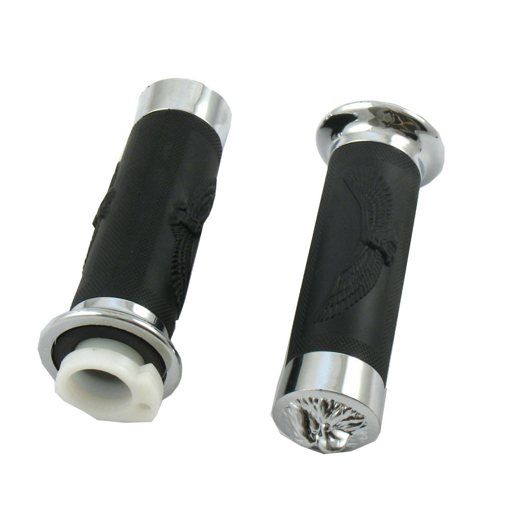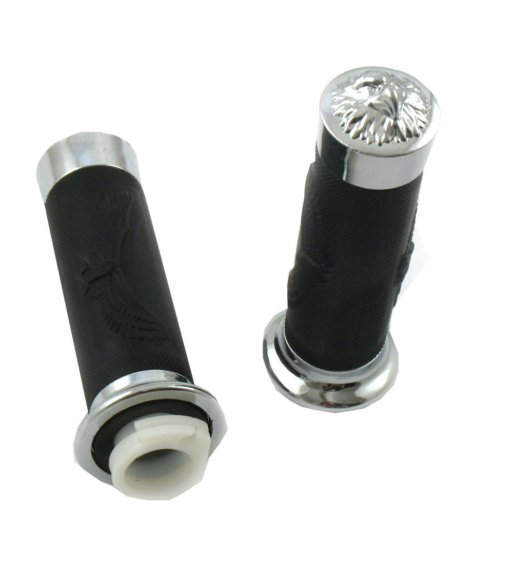 Uniwersalne manetki z rollgazem. Manetki posiadają tłoczone orły oraz końcówki w kształcie głowy orła Super tuning do skuterów, motocykli, quadów Nadają motocyklowi niepowtarzalnego uroku i stylu. Łatwe do założenia, pozwalają na odróżnienie każdej maszyny. Rollgaz na jedną linkę.