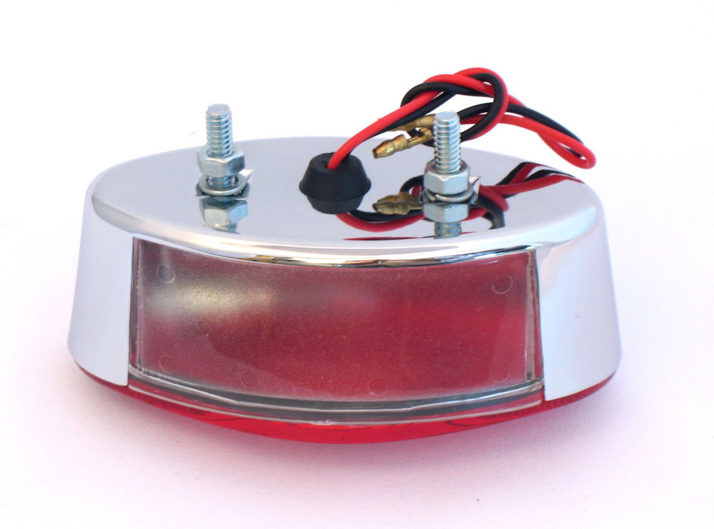 Lampa tylna solidnie wykonana, w metalowej chromowanej obudowie.