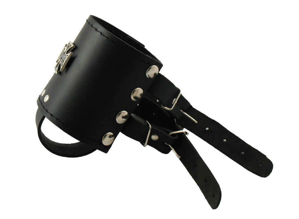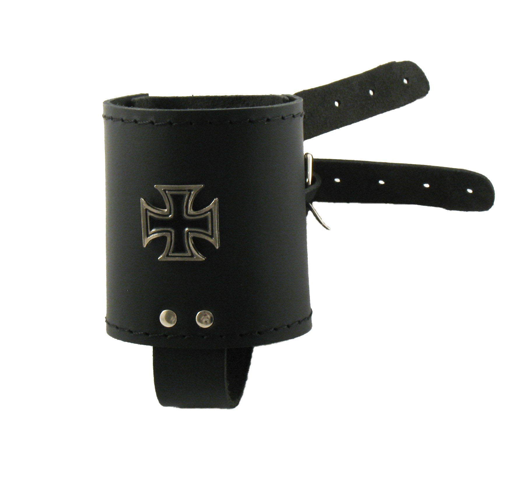 Skórzany uchwyt na puszkę z czarnym krzyżem